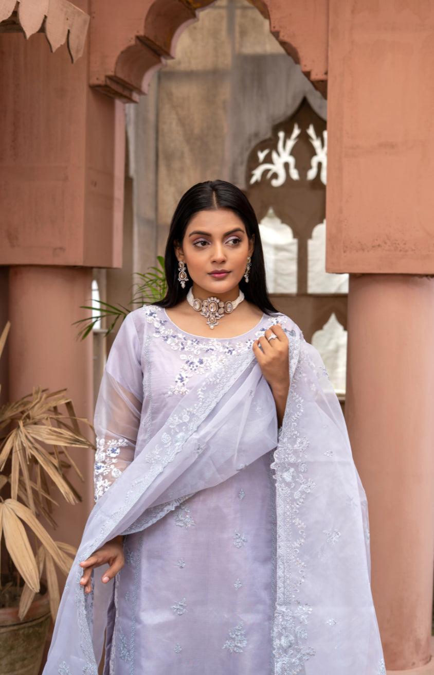 Fabric: Organza shirt & dupatta | Fine silk inner & trouser
